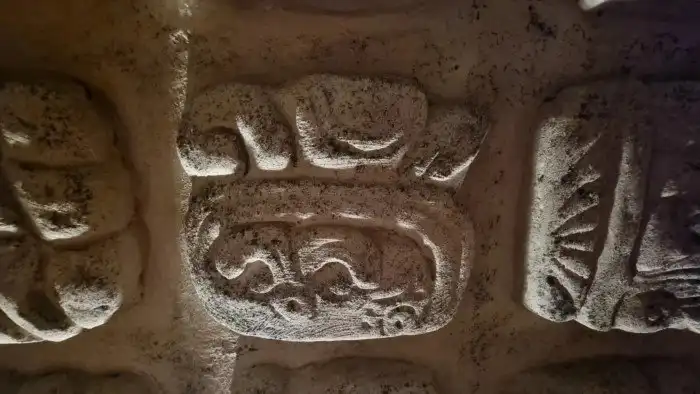 А вот фрагмент копии стены майя с реконструкции стены в столичном баре Кнорозов, названным так в честь знаменитого ученого: