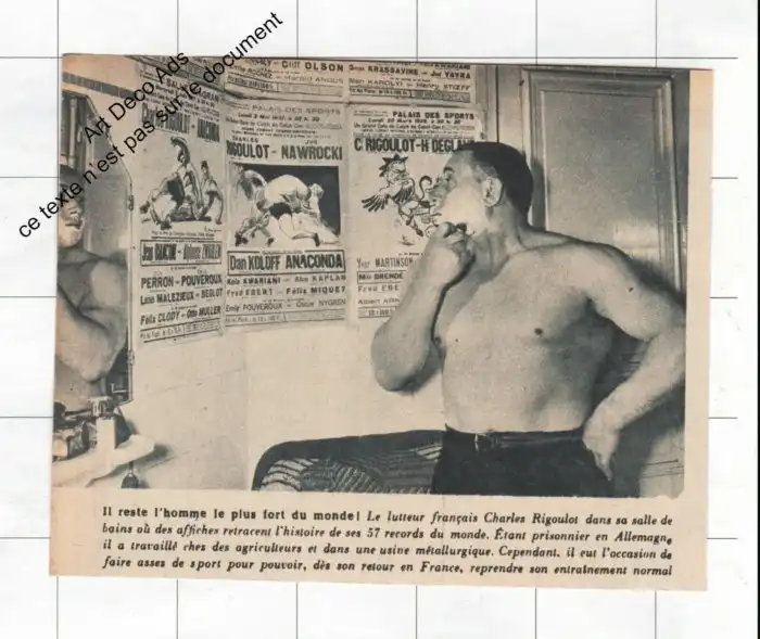 На фото - Шарль Жан Риголо - французский тяжелоатлет, профессиональный рестлер, автогонщик и актер. Имел конфликт с нацистами, когда те вошли в Париж, попал в тюрьму, но совершил побег, используя свою потрясающую мощь.