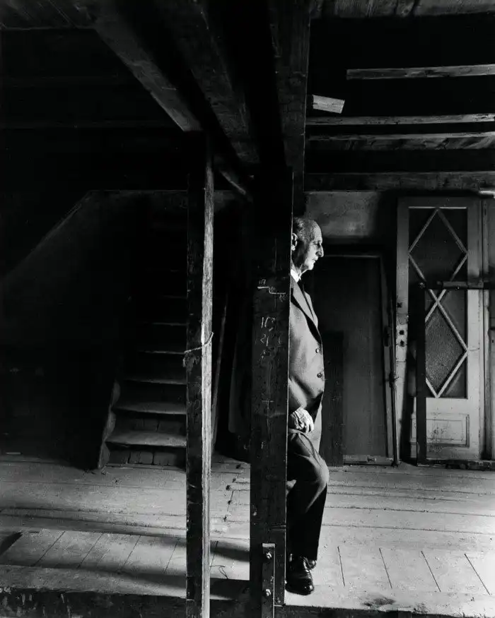На фото - отец Анны Франк Отто Франк снова посещает чердак секретной пристройки, где он с женой и детьми прятался от нацистов. Он был единственным в своей семье, кто пережил Холокост. Фото сделано в 1960, спустя 15 лет после его освобождения. И..потери всей его семьи.