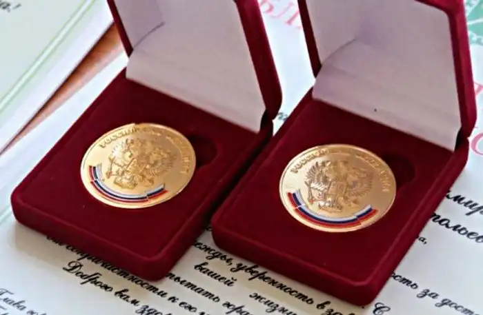 Традиция награждать гимназистов медалями появилась в России в 1828 году. После Октябрьской революции они были упразднены, однако вновь вернулись в школу постановлением СНК СССР в 1945 году.