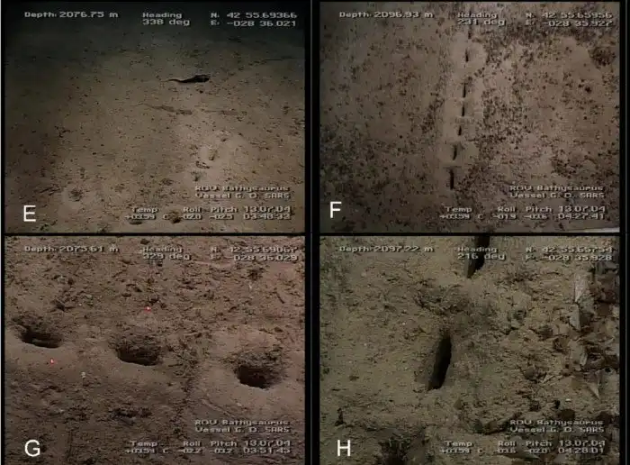 Во время очередного погружения в воду ученые обнаружили странные объекты, которые поставили их в тупик. Неподалеку от Азорских островов исследователи наткнулись на десяток наборов отверстий, напоминающих дорожку на дне океана.