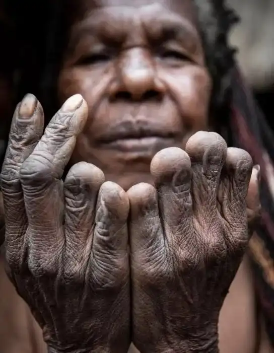 Одна жуткая особенность выделяет женщин этого племени: почти каждая представительница прекрасного пола недосчитывается пальцев на руках. Чем старше женщина – тем больше пальцев у нее нет. Это связано с древним ритуалом племени, согласно которому после смерти близкого родственника женщины обязаны лишать себя одной фаланги на пальце. Мужчин эта традиция не затрагивает.