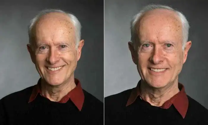 Чтобы сделать эти фотографии психолог сперва организовал встречу этого человека с его хорошим другом. И сфотографировал его в момент радости. Во втором случае он попросил героя фотографии вспомнить какого-нибудь неприятного человека и одновременно улыбнуться.