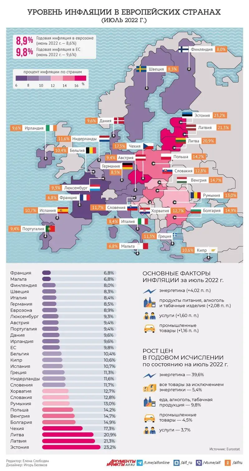 Какие страны Европы больше всего пострадали от инфляции.