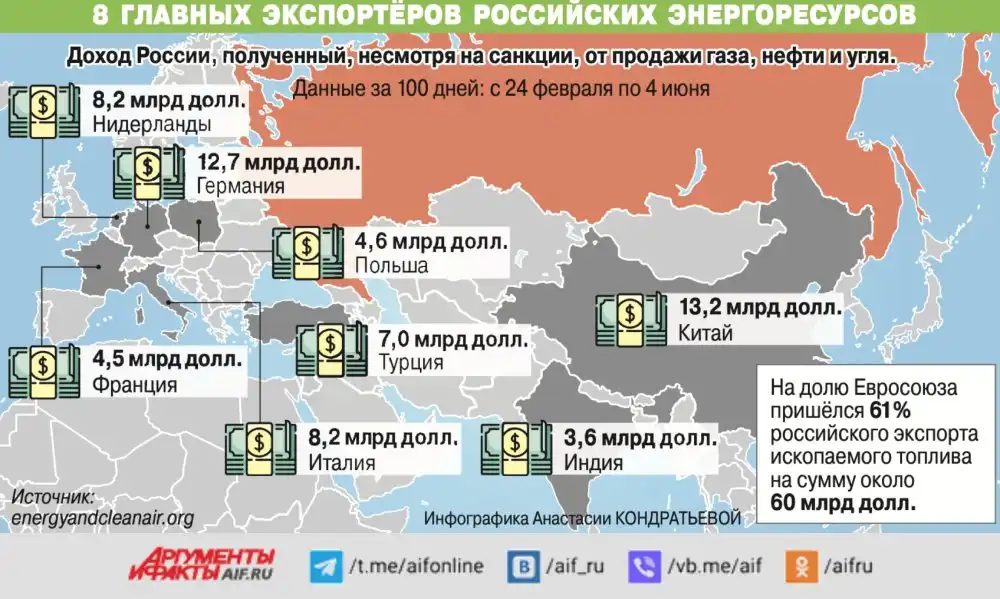 8 главных экспортёров российских энергоресурсов.
