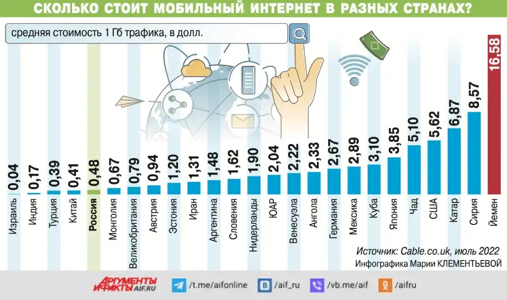 Сколько стоит мобильный интернет в разных странах.