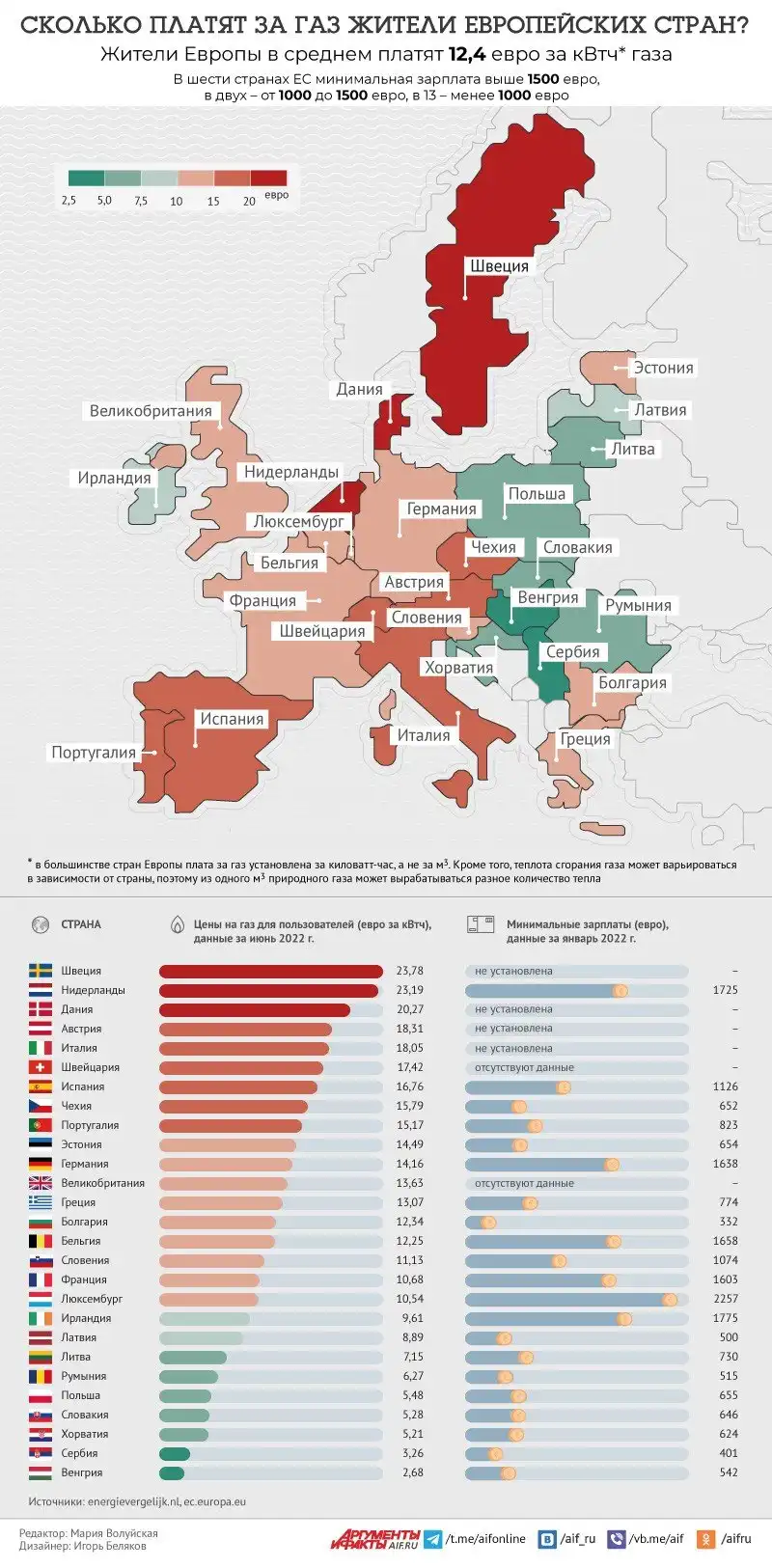 Сколько платят за газ жители европейских стран?