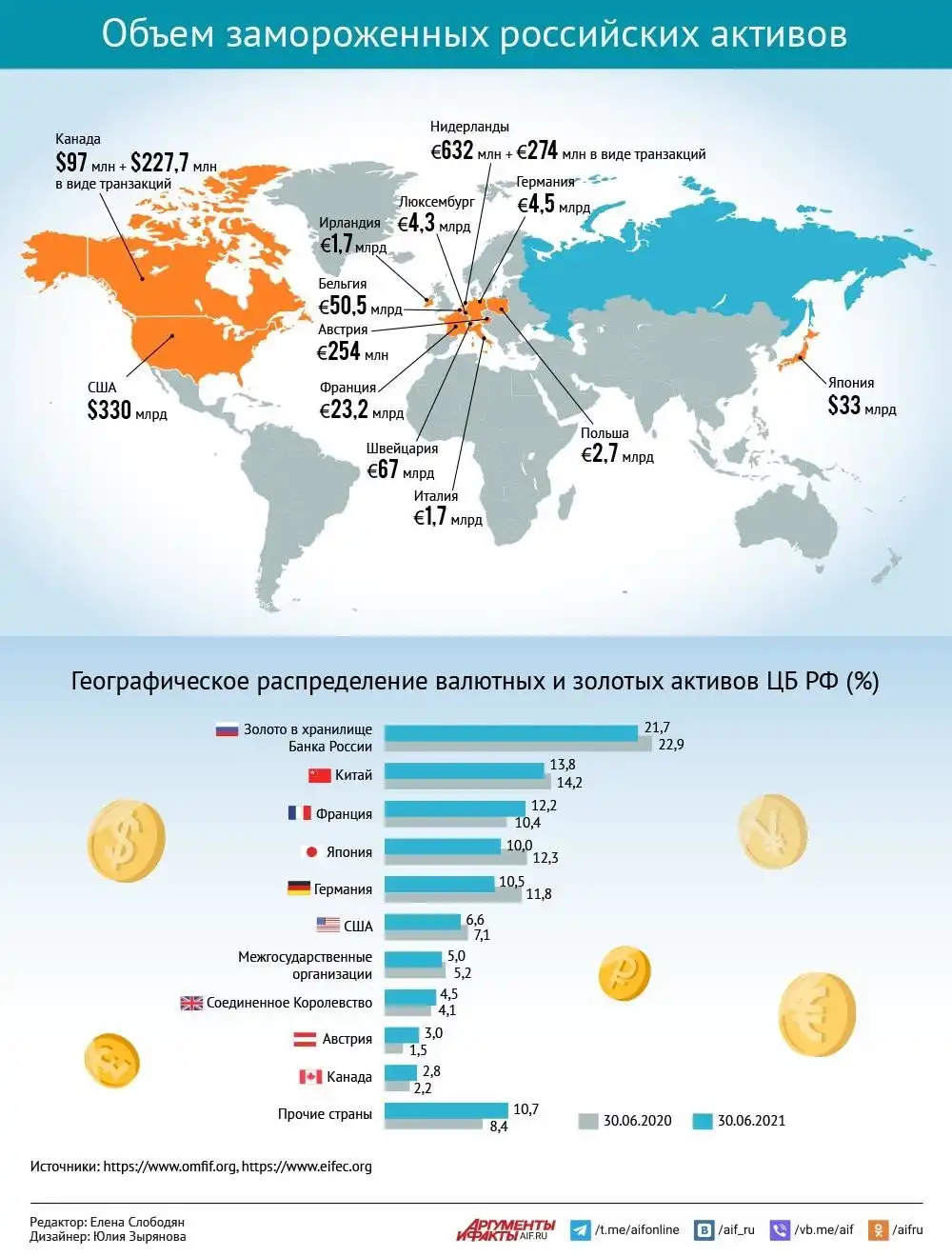 Объем замороженных российских активов.