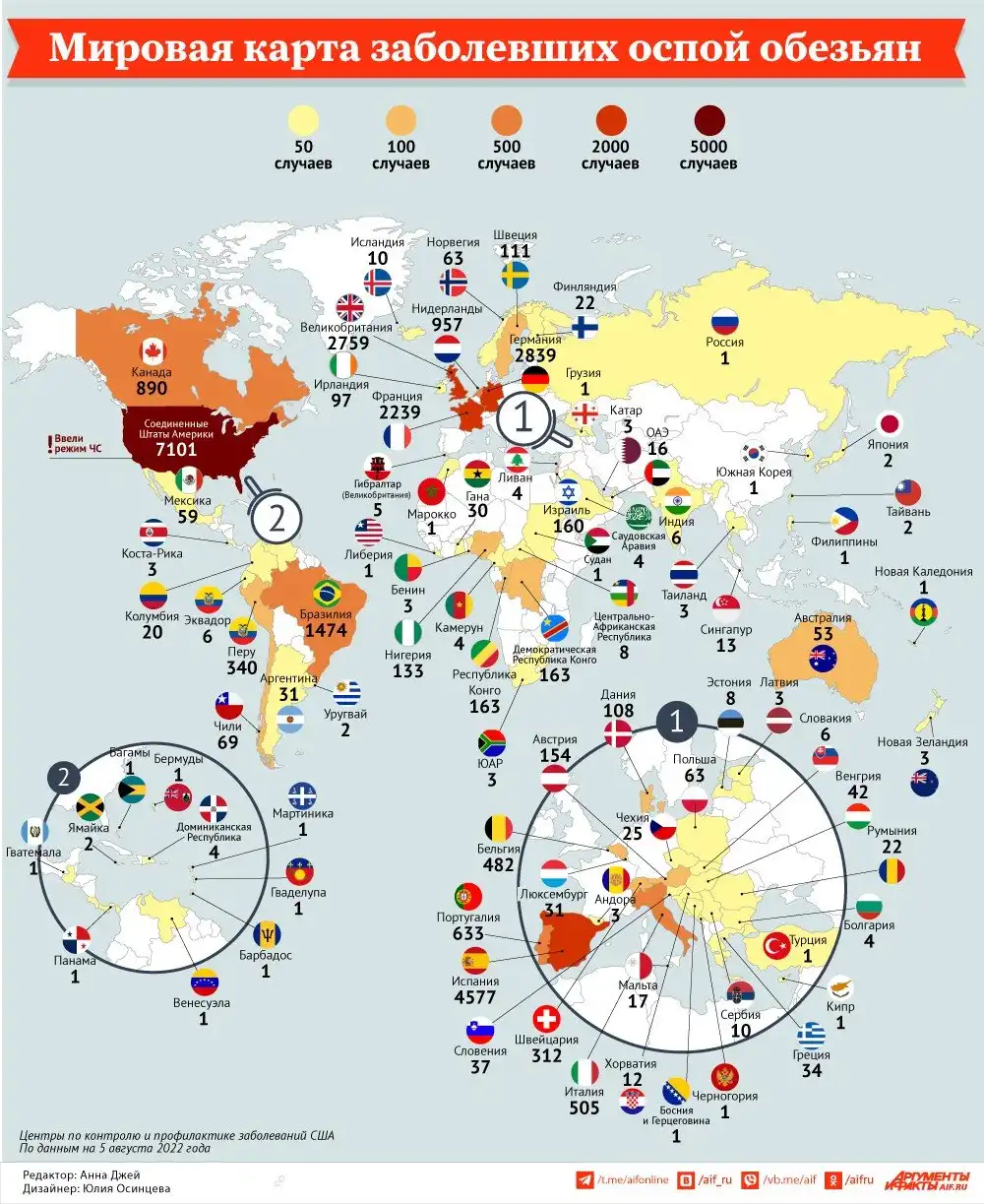 Распространение оспы обезьян в мире.