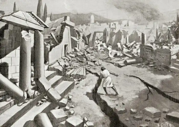 Великое землетрясение в Спарте. Источник изображения: Hutchinson’s History of the Nations, 1915.