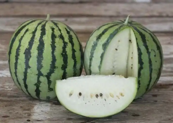 А вот такой арбуз попался одному из покупателей в магазине. На первый взгляд может показаться, что он не дозрел, однако это довольно редкий сорт «саскачеванский крем».