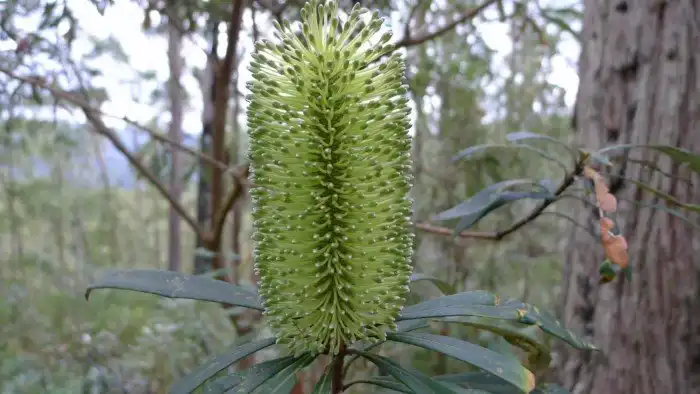 Это загадочное дерево, напоминающее расчёску прямиком из 80-х, носит название банксия цельнолистная.