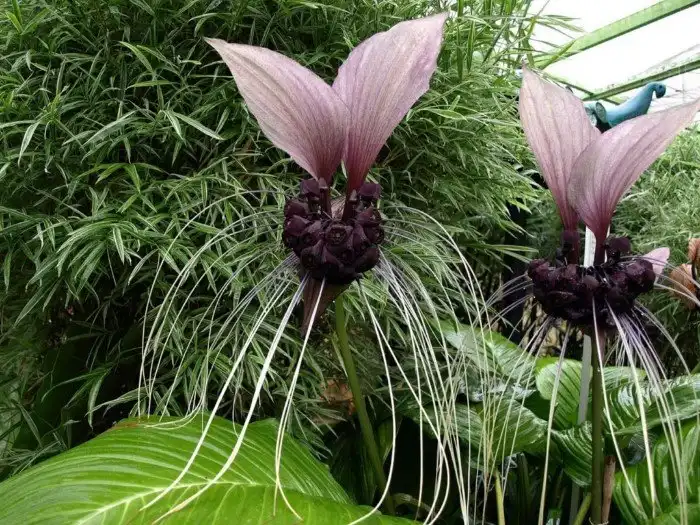 Ну и закончим вот таким необычным цветком, как такка шантрье. В простонародье его называют цветком летучей мыши, ведь он выглядит так, будто на нём спят эти млекопитающие.