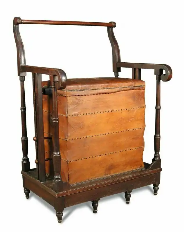 И именно для лечения сплина изобрёл Генри Марш комнатного конька. Теперь леди и джентльмены могли скакать на лошадях в любую погоду, даже не выходя из дома! Они садились на вот это устройство, держались руками за поручни, и… скакали, скакали, скакали!