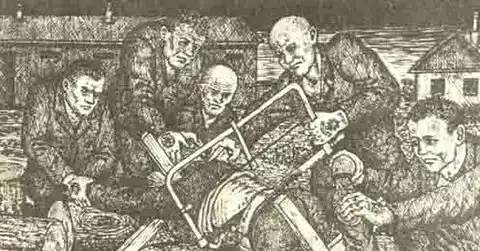 Самое удивительное, чтобы существовали даже настоящие перемещения по зонам, так называемые «трюмиловки», состоящие из самых отпетых уголовников. Карательные отряды вояжировали по лагерям, устраивая марафоны насилия и принуждая правильных воров примыкать к сукам. Например, одной из самых известных своей жестокостью была бригада вора Васьки Пивоварова, воевавшего в штрафбате, а после ставшего своим у НКВДешников. Основная цель таких командировок заключалась в поддержке и установлении власти «разложенных», которые были уже во всех лагерях.