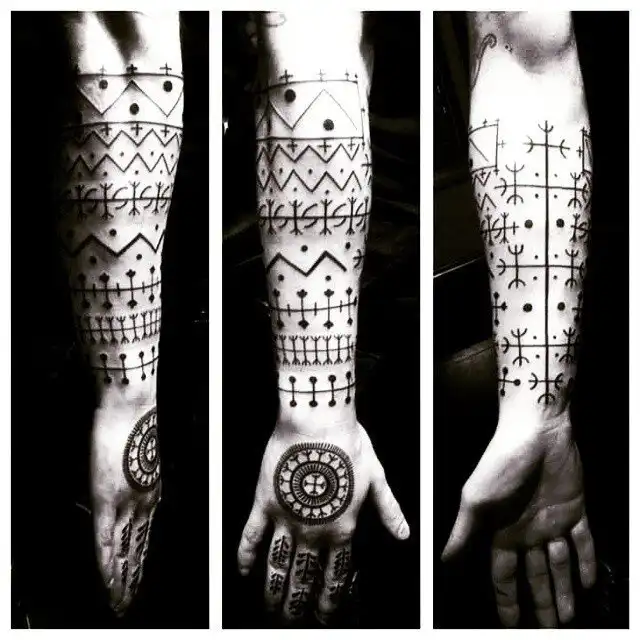 В некоторых деревнях Боснии, Хорватии и Албании женщины издавна делают татуировки на руках с символами солнца. Эти узоры являются пережитками языческих корней балканских славян и служили им оберегом.