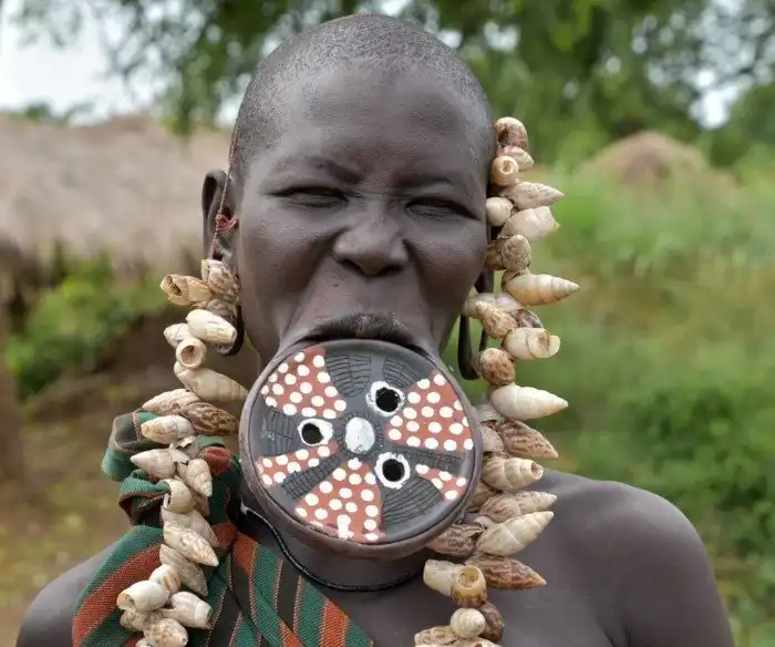 Это племя давно столкнулось с серьезной проблемой: их девушек (которые были прекрасны) похищали мужчины из других кланов, и из-за этого их община оказалась под угрозой исчезновения. Вот так они придумали следующее: женщины начали вставлять затычки в нос и наносить татуировки на лица, чтобы нанести ущерб своей естественной красоте. Это сыграло ключевую роль в их выживании.
