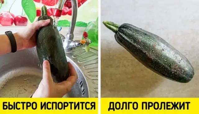 Секрет длительного хранения кабачков заключается в том, чтобы исключить любое их взаимодействие с влагой. Мыть плоды, которые вы не собираетесь приготовить прямо сейчас, категорически не рекомендуется. Более того, перед отправкой кабачков в холодильник нелишним будет протереть их сухой салфеткой, чтобы избавить продукт от лишней влаги.