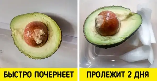 Авокадо — довольно питательный фрукт, потому часто при приготовлении бутербродов и салатов мы ограничиваемся лишь одной его половиной. Как известно, разрезанный плод очень быстро темнеет. Чтобы это исключить и продлить свежесть половины авокадо до 2 дней, его следует поместить в закрытый контейнер с нарезанной луковицей. Однако важно понимать, что плод впитает аромат лука. Хотя это может быть и плюсом: все зависит от ваших вкусовых предпочтений и намерений относительно использования авокадо.
