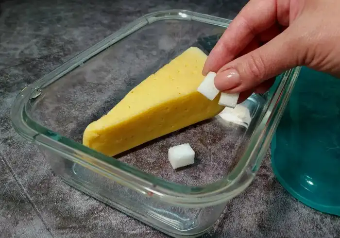 Ну и закончим сыром, который при контакте с воздухом довольно быстро сохнет. Дабы это не происходило, стоит поместить его в герметичную ёмкость вместе с несколькими кубиками сахара, чтобы вся лишняя жидкость уходила в них. Правда, стоит следить, чтобы они не размякли, и вовремя их менять.