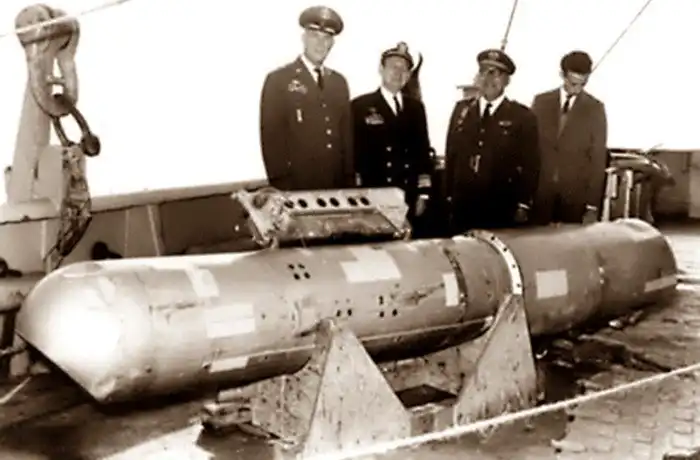 Самолёт рухнул в море в 11 км от американской авиабазы. В этом не было бы большой беды, однако на его борту находились 4 водородные бомбы.
