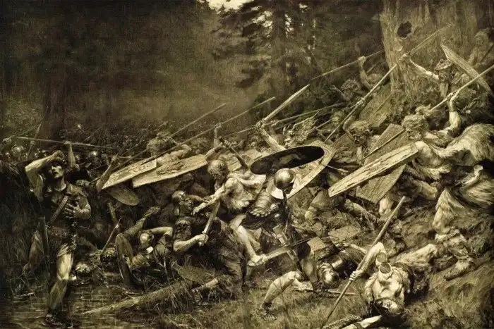 Римская армия, вопреки распространённому мнению, вовсе не была непобедимой. В военной истории Рима есть и страшные поражения – например, когда в 9 году нашей эры в Тевтобургском лесу германцы под командованием Арминия уничтожили сразу три легиона (около 30 000 человек), причём убили полководца (им был пропретор Квинтилий Вар) и захватили знамёна легионов, так называемых «орлов», что в Риме считалось наивысшей степенью воинского позора.