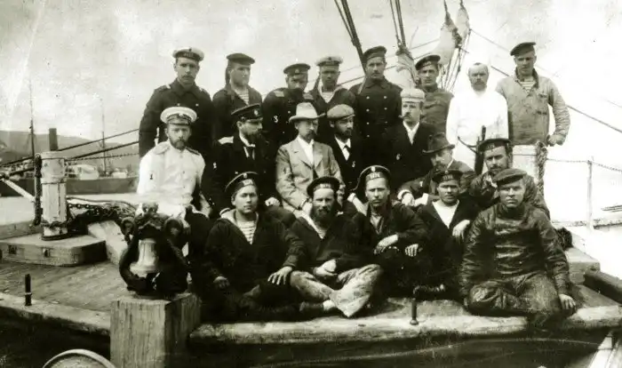 Участники экспедиции. Среди них были лучшие географы и мореплаватели, а также Александр Колчак – тогда лейтенант и учёный-океанограф, а в будущем глава «белой России» в Гражданской войне
