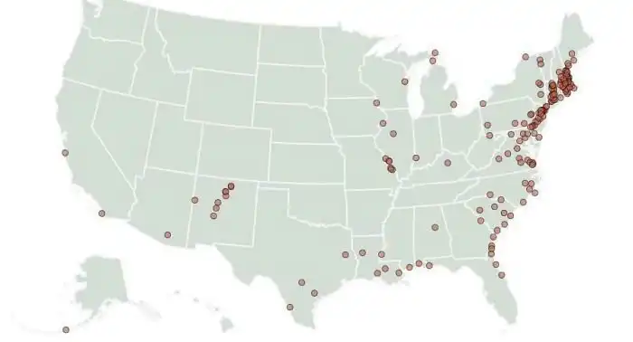 28. Карта все еще населенных городов США, которые старше самих США
