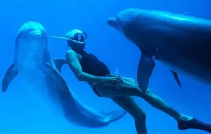 Когда дельфин видит человека, окруженного пузырьками воздуха, у них срабатывает инстинкт. Они подплывают к нему и помогают подняться на поверхность, словно он член их стаи. Однако не все исследователи этих млекопитающих разделяют подобную точку зрения.