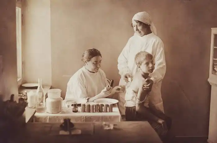 В 19 веке вакцинация против оспы стала обязательна во всей Европе. В России это сделать не удалось. Этому препятствовала огромная территория с плохо развитой медицинской транспортной инфраструктурой, низкий уровень медицинского персонала, которого часто даже просто не хватало, злоупотребления чиновников и множество других проблем. К 1910 году обязательную вакцинацию против оспы проходили только дети, которые поступали учиться, железнодорожные ссыльные, новобранцы, ссыльные. А первое в истории нашей страны решение о всеобщей вакцинации было принято 10 апреля 1919 года. Тех, кто уклонялся лишали заработной платы, продовольственных карточек, отказывали в прописке и прочие ущемления. Сведения о вакцинации вносили в трудовую книжку.
