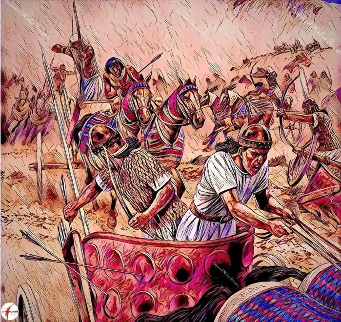 50 египетских колесниц формировали эскадрон – тактическое подразделение на поле битвы. Эскадроны с громкими названия «Громобой», «Молния», «Удар Осириса» входили в танковый полк армии фараона.