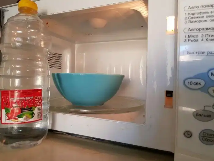 Уксус также предлагают использовать для очищения микроволновки, который нужно смешать в миске с водой и поставить внутрь на 5 минут. Застывший жир, конечно, будет убран, вот только невыносимый запах придётся терпеть ещё несколько часов. Проще всё-таки воспользоваться моющими средствами.