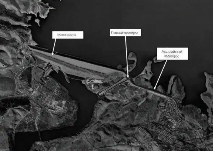 Плотина в Мосуле, вид со спутника