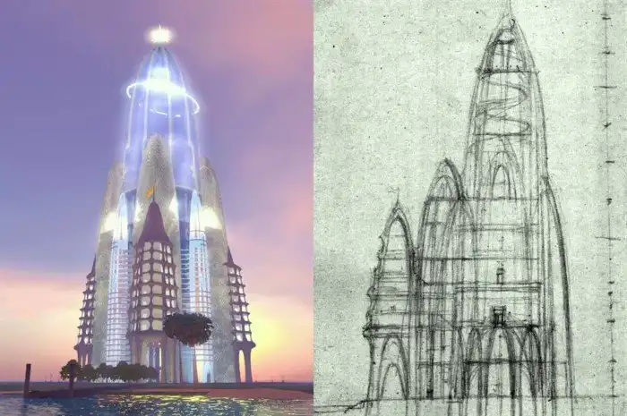 Была также детально проработана система жизнеобеспечения сооружения, которая учитывала лифт, водоснабжение и вентиляцию до последнего этажа. Башня должна была стать жилым домом для 500 тысяч человек!