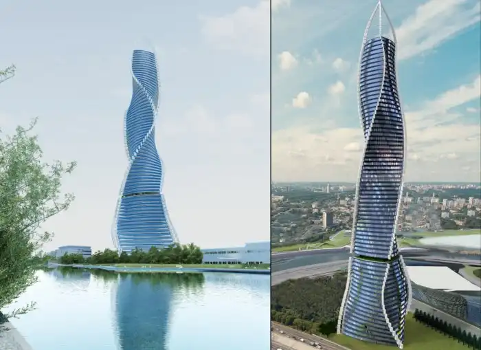 Это небоскреб высотой 420 метров. Его главная особенность в том, что каждый отдельный этаж может самостоятельно вращаться вокруг своей оси. Получается здание, которое постоянно меняет форму.
