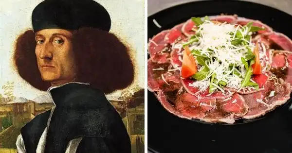 Впервые карпаччо было приготовлено в середине прошлого столетия. Это блюдо, состоящее из тонких ломтиков говядины, томатов и пармезана. Итальянский ресторатор назвал его в честь знаменитого художника Эпохи Возрождения Витторе Карпаччо, в картинах которого преобладали преимущественно красные оттенки.