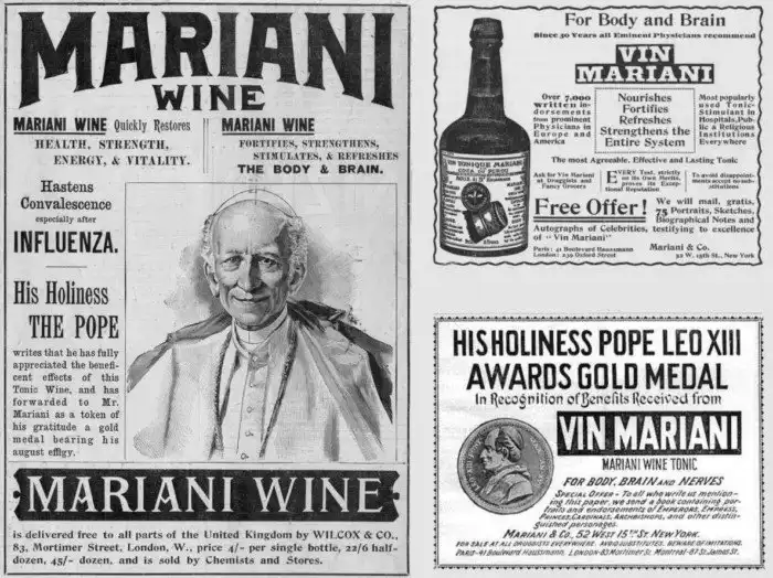 Оказывается, что «Кока-кола» далеко не уникальный напиток, ведь у неё был предок – Вино Мариани. Именно в него добавляли листья коки. Оно содержало кокаин и рекламировалось как напиток, восстанавливающий здоровье и придающий человеку энергию. Собственно, вино и вдохновило Пембертона на создание всемирно известного сегодня напитка.