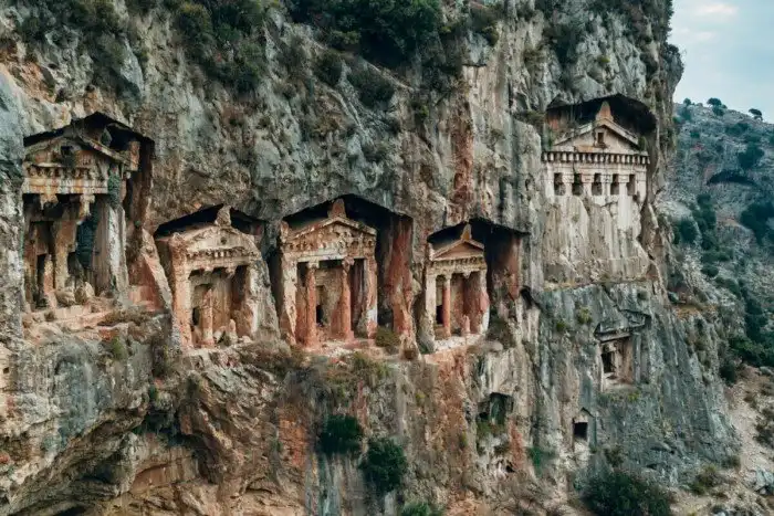 Кстати, интересно. Как раз к тому же времени, что и ваза, относятся вот эти ликийские скальные гробницы: