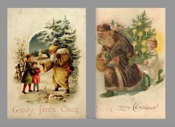 Потом лютеране (немецкие протестанты, последователи Лютера) смягчились в отношении святых, и подарки стал вручать по-прежнему святой Николай, и класть их в чулочек, но... всё-таки уже на Рождество, – успели привыкнуть! Вот как дело запуталось...