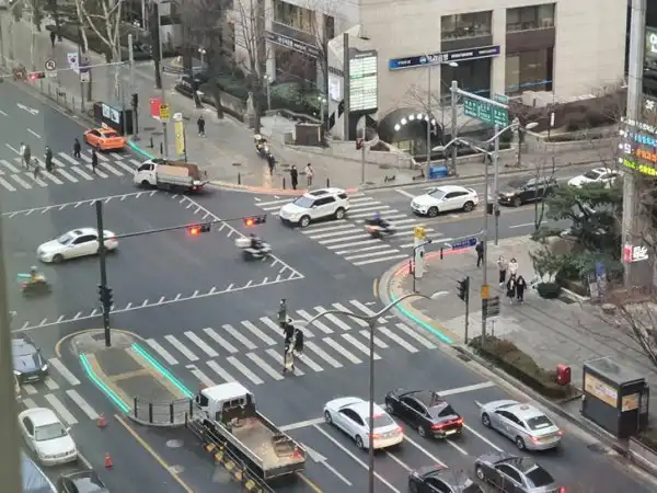 На некоторых перекрестках сигналы светофора дублируются на краю пешеходного перехода. Это сделано ради безопасности тех, кто ходит по улицам, уткнувшись в телефон. А таких очень много, корейцы во время ходьбы буквально не отрываются от своих смартфонов, играя или просматривая фильмы.