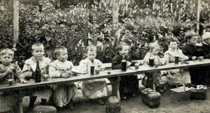Это прозвучит как нонсенс в наше сегодняшнее время, но это действительно было – школьникам на обедах, в столовой раздавали по бокалу красного вина. Считалось, что такой дозы достаточно для активизации в детском организме: умственных способностей, прилива энергии, улучшения кровообращения (в том числе, и к головному мозгу).