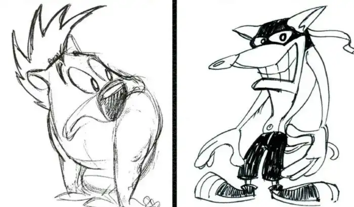 Создатели предлагали и другие варианты персонажа, но в итоге они остановились на стройном бандикуте в маске а-ля Зорро и с длинным хвостом. Правда, оказалось, что маска и хвост создавали дополнительные проблемы с анимацией, поэтому от них решено было отказаться.