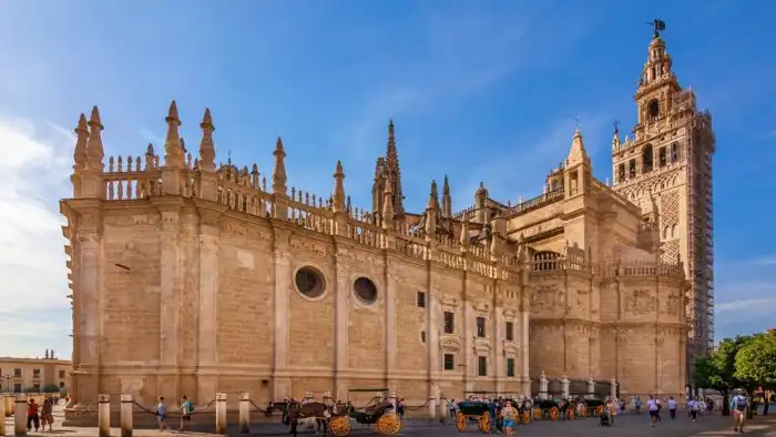Гордость Испании. Подобно миланскому храму, построен на месте мечети Севильского эмирата. Изначально Севильский собор задумывался как самый крупный храм, который бы никто в мире не смог превзойти. Деньги испанцы не жалели. Считается, что крест собора отлит из американского золота, привезенного Колумбом.