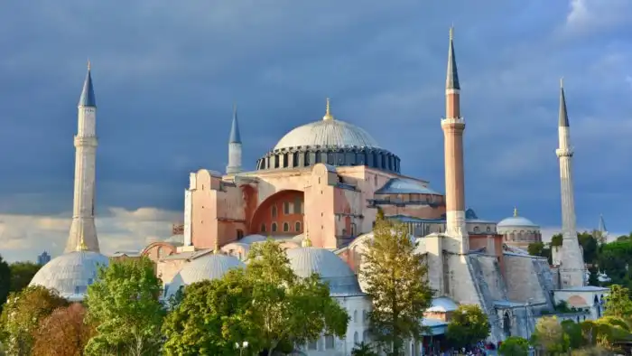 Было бы неправильно не упомянуть в подборке православные храмы. Собор Святой Софии, расположенный в Стамбуле, в этом плане необычен. Это бывший центр православной Церкви, символ «золотого века» Византии, который сегодня является мечетью.
