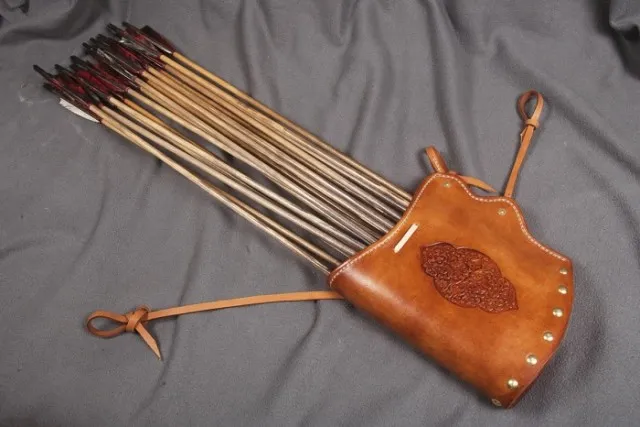 Существовали колчаны с расширенными прорезями. В таких могло помещаться до 40 стрел, однако важно понимать, что носить такое «богатство» становилось не слишком-то удобно. При этом уже упомянутые валлийские лучники часто носили стрелы не колчанами, а перевязями в сумках.