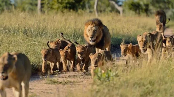 8. Когда лев-самец берет под свой контроль прайд, он обычно прогоняет молодых самцов. Самки ходят на охоту и обеспечивают едой всё семейство