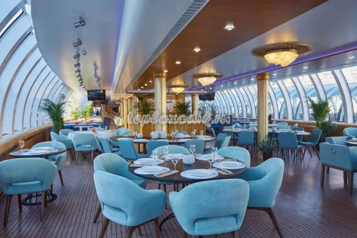 Теплоход-ресторан «Erwin» предлагает своим гостям не только прекрасный вид на Москву-реку, но и вкуснейшую кухню, а также живую музыку. Гости будут наслаждаться ужином в ресторане, после чего отправиться на верхнюю палубу, где есть открытая терраса с видом на реку. В теплоходе имеется два зала, в которых можно уютно расположиться и приятно пообщаться с друзьями или семьей.