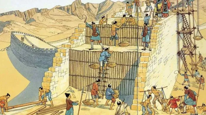 Строительство Великой китайской стены проходило под руководством генерала, древнекитайского полководца Мэн Тяня. Для постройки сооружения он собрал целую армию из заключенных, местных фермеров и солдат. Те, что были хороши в инженерном деле, планировали ход строительства. Фермеры часто занимались расчисткой земли, рытьём траншей и возведением фундамента. Преступники трудились долгие часы в сложных условиях, таким образом отбывая наказание.