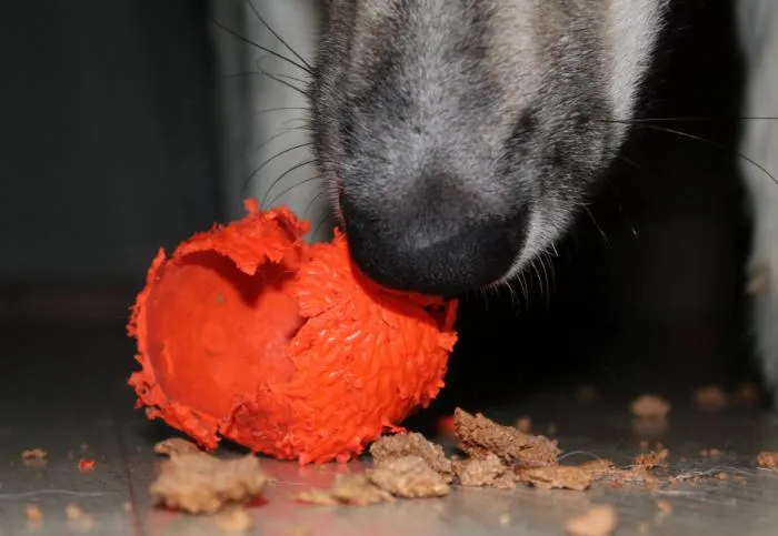 Первое, на что стоит обратить внимание — качество. Вещь не должна ломаться и рваться от одного укуса. Оставшись одна, скучающая животина будет радостно исследовать силу своих челюстей. А распотрошив игрушку, пёс с удовольствием доест остатки резинового мячика или пожуёт наполнитель из любимого мишки. Мелкие детали: пуговки, ниточки — тоже отправятся в пасть. Как итог — срочный приём к ветеринару с непроходимостью желудка.