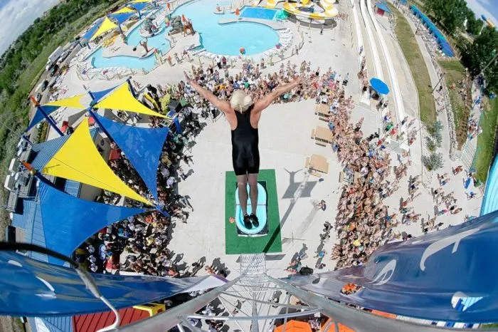 2. В 2011 году американец Даррен Тейлор прыгнул с 11-метровой высоты в надувной бассейн глубиной 30 см. Но он на этом не остановился. В 2014-м он побил свой рекорд, спрыгнув с высоты 11,56 метров